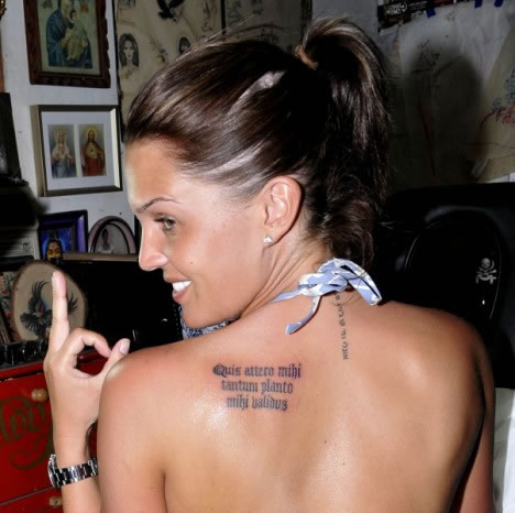 Ms. Lloyd also has a Latin phrase on her back left shoulder which reads "Quis attero mihi tantum planto mihi validus" and translates into "To diminish me will only make me stronger".